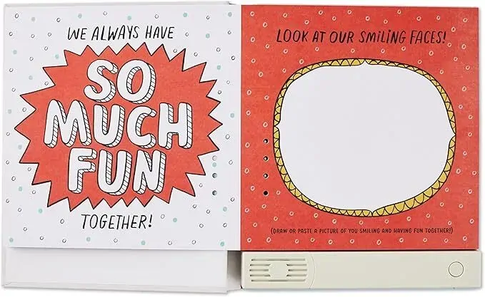 A new take on Hallmark's classic format, this recordable storybook is perfect for kids (or any creatives at heart) to colour, write, and draw in to customise a message for someone they love. This fun book from a child to an adult features prompted pages with editorial to spark ideas and fun memories to capture. Make the story extra special by recording it together, having little artists describe their drawings, adding your own photos or anything else uniquely you!
