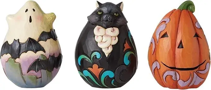 These spooky Jim Shore Halloween icons are perfect for decorating small spaces or stacking in a Jim Shore Halloween basket. Individually or together they will bring a friendly scare is in the air this season.