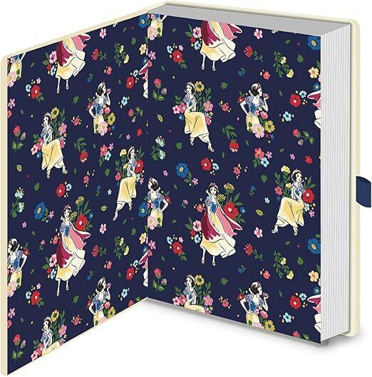 This premium Snow White-themed A5 notebook is sure to make you feel like the fairest one of all. With 240 lined pastel-edged pages, pretty floral watercolour-style artwork of the first Disney Princess on both sides of the hard cover and inside, and an elastic closure strap and pen holder, you'll be able to take notes in style.