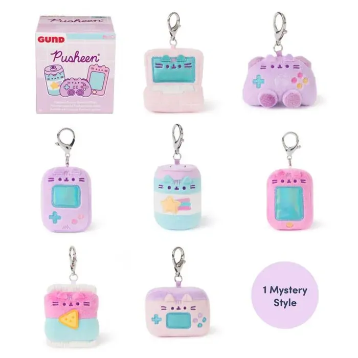 Level up with Pusheen! This series of miniature surprise plush features 8 vibrant and irresistibly cute designs, each showing Pusheen as an adorable gaming accessory or treat. From laptops, handheld controllers, and colourful consoles to soda cans and bags of chips, Pusheen is ready to play! Unbox and collect all eight, including a rare mystery style. Each plush includes a metal keyring for secure attachment to bags and backpacks.