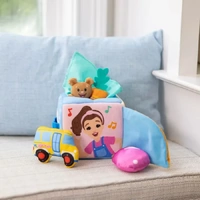 Playtime for baby is full of fun with the Ms. Rachel Surprise Learning Box! Inspired by Ms. Rachel's popular baby and toddler videos, designed to nurture early developmental milestones like animal and object recognition while honing fine motor skills like pinching and grabbing. The baby-safe toy box features four interactive learning scenes and six soft surprise accessories, including a plush teddy bear, satin scarf, and more. Prompt interactions and encourage early speech development with the bonus learning card, featuring play tips and skill-building activities. Created using super-soft fabric, use at home and on the go as infant travel toys as newborn gifts, your baby nursery, or as a birthday baby gift!