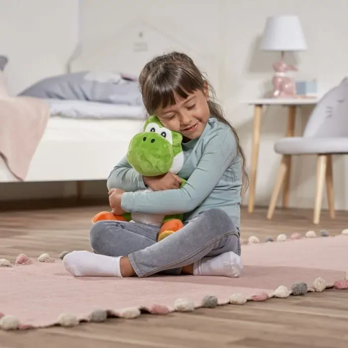 Yoshi is a dinosaur character from the popular and long-running Super Mario series. This Yoshi plush features embroidered detailing and is covered in green soft plush, with his red shell and orange shoes. Soft and cuddly, this authentic Super Mario plush is perfect for hugging and role-playing. A must-have for any Nintendo fan.