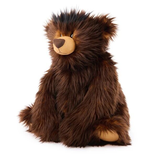 Boe may be big, but he won’t bite! This extra-fluffy bear has thick, multi-hued brown plush and a sophisticated faux suede muzzle with paw pads to match. This gentle giant also has larger-than-life proportions, including oversized, easy-to-grab paws and long, floppy arms. Boe’s whispy, high-pile fur has several plush shades, ranging from a lighter sandy tan to deeper chocolate and dark black-brown hues. His earnest expression and eager forward-leaning pose tell you just how much he wants a big squeeze from his best friend!