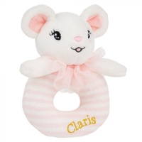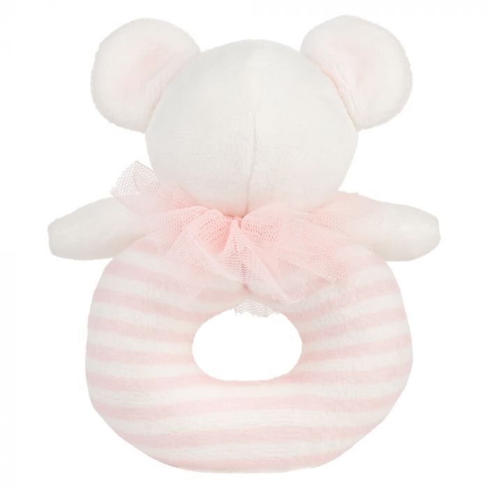 This beautifully crafted Claris Ring Rattle is a plush friend and rattle in one. Made from the softest baby-safe plush fabrics in a lovely shade of white and pink and featuring a large chunky ring shape in the perfect size for little hands to grasp, this ring rattle also includes a gentle rattling sound to delight and captivate baby.