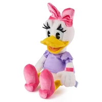 All you need is a little bit of magic. Mickey Mouse and his best pals are here in the latest Disney collection by GUND, boasting adorable classic designs for play and display to kids and collectors alike. This plush shows Disney's Daisy Duck, Donald's sweetheart, looking stylish and elegant as ever with her signature outfit and soft plush. Daisy wears a lilac satin shirt with plenty of fun accessories: her iconic pink heels, a dainty pink bracelet, and a pink icy velour bow. Her long, faux suede eyelashes are complemented by a pretty periwinkle eyeshadow. Daisy also features floppy wings and short legs that dangle playfully.All you need is a little bit of magic. Mickey Mouse and his best pals are here in the latest Disney collection by GUND, boasting adorable classic designs for play and display to kids and collectors alike. This plush shows Disney's Daisy Duck, Donald's sweetheart, looking stylish and elegant as ever with her signature outfit and soft plush. Daisy wears a lilac satin shirt with plenty of fun accessories: her iconic pink heels, a dainty pink bracelet, and a pink icy velour bow. Her long, faux suede eyelashes are complemented by a pretty periwinkle eyeshadow. Daisy also features floppy wings and short legs that dangle playfully.