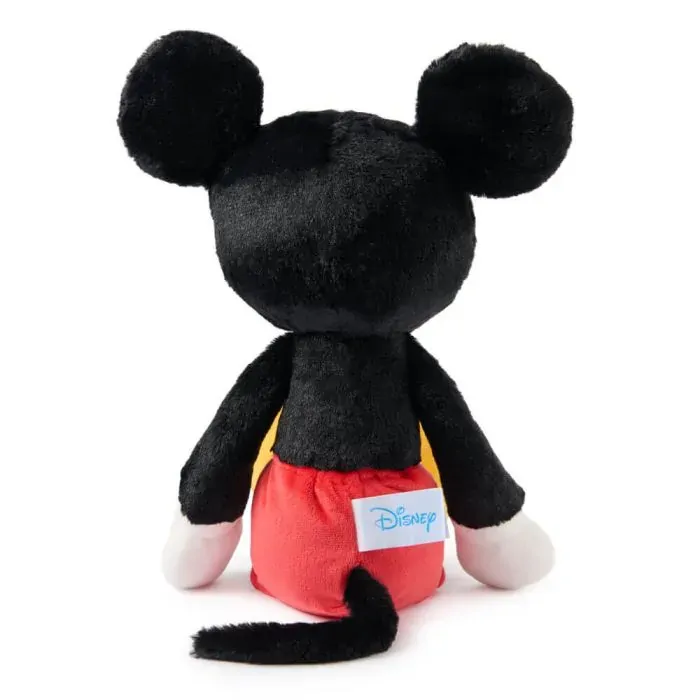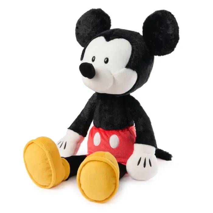 - Shows the iconic Disney character in his signature outfit with soft black and white plush, bright red pants, white gloves, and yellow shoes