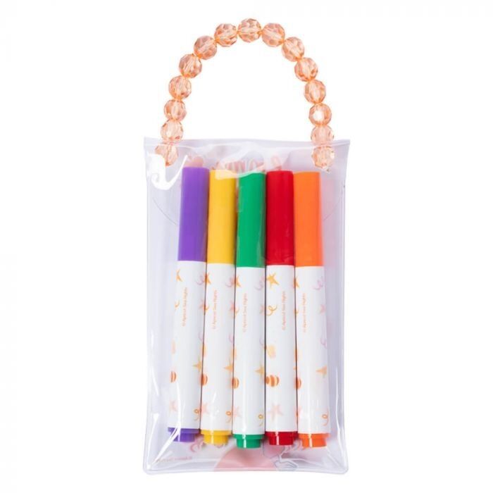 Pre-schoolers can get creative and colour their world with this fun set of 5 Emma Memma chunky marker pens in yellow, orange, papaya, green and purple. Presented in a branded clear wallet with an orange gemstone handle, the markers can easily be packed away for safe-keeping. Perfect for on-the-go creative adventures!
