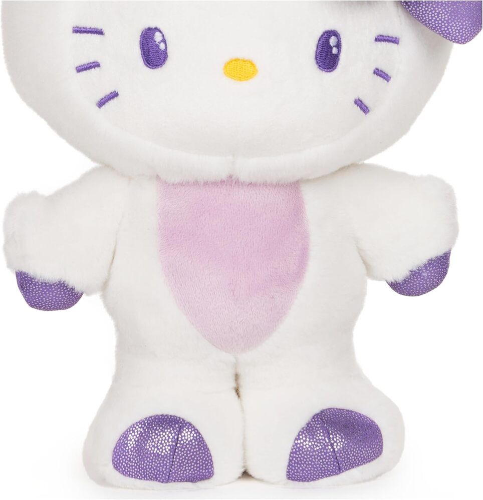 Hello Kitty®, the internationally loved character from the world of Sanrio, is a kawaii little girl with an iconic bow who loves making new friends and having fun! Hello Kitty is looking more magical than ever dressed up as a beautiful unicorn with purple sparkling hooves that match her bow! This free-standing 9.5" Hello Kitty plush in a white unicorn hoodie has adorable embroidered face and nose details, and a rainbow mane that fluffs down her back and up around a sparkling unicorn horn on top of her head. Collect Hello Kitty and all of her friends as soft, cuddly GUND® plush!
