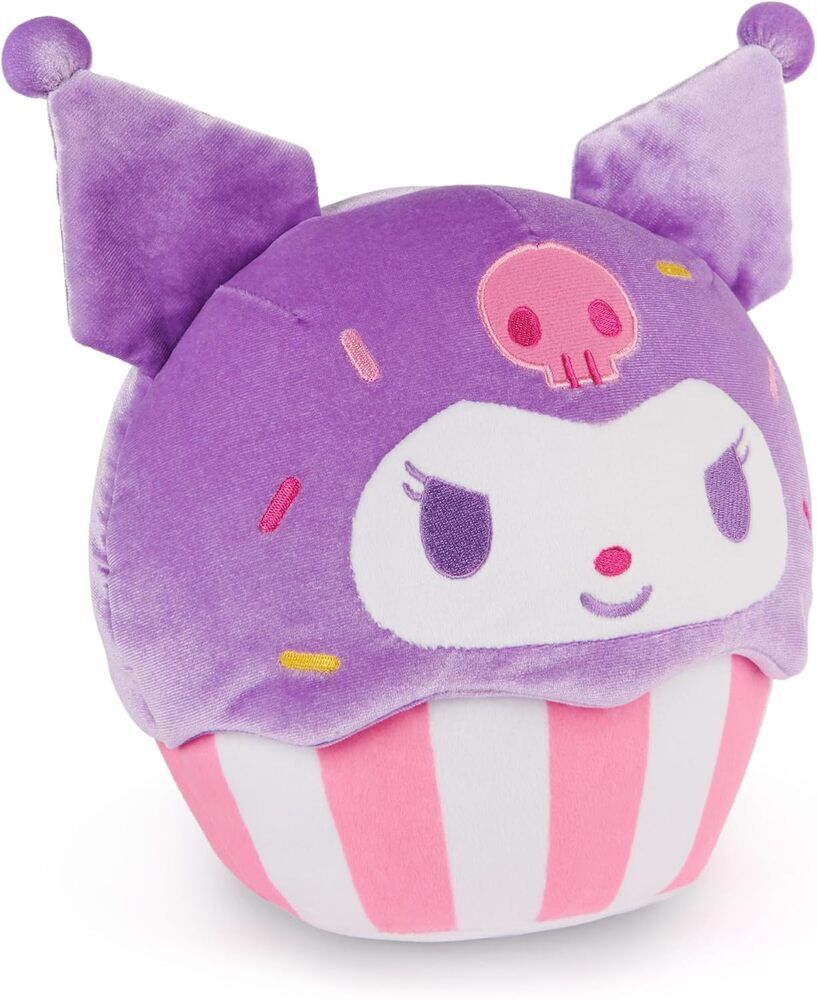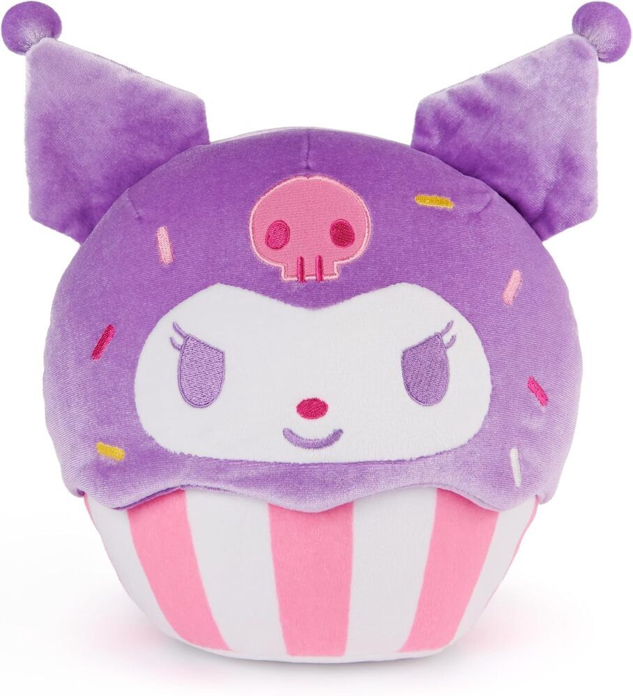 Satisfy your sweet tooth with Hello Kitty and Friends! Hello Kitty, My Melody and Kuromi are all here as irresistibly cute cupcakes in the latest food-themed Sanrio plush collection by GUND. This huggable 8" cupcake plush features Kuromi nestled in a pink and white striped baking cup, wearing her iconic purple jester’s hat with a pink embroidered skull. Kuromi’s purple and pink embroidered facial details also match the fun pink, white and yellow embroidered sprinkles that dot her hood. It's bright colourful design makes this soft plush an eye-catching piece for any kawaii plushie collector. Make playtime even sweeter by completing your cupcake collection with 8" Hello Kitty and My Melody styles!