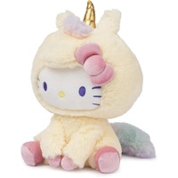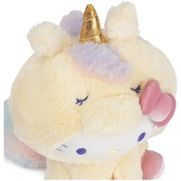 Hello Kitty® and friends are here to bring a little magic to playtime! Hello Kitty has never looked cuter than as a soft cuddly pastel yellow unicorn with rainbow details. This 6" plush features the beloved Sanrio character in a sitting pose, with velvety-soft pink hooves that match her iconic bow. Her eye-catching shiny gold metallic horn and sleepy unicorn embroidered eye details make this plush a unique piece for Sanrio fans and kawaii plush collectors of all tastes. Collect Hello Kitty and all of her friends as soft, cuddly GUND® plush!