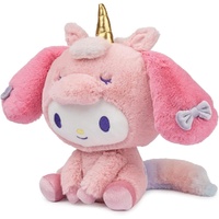 Hello Kitty® and friends are here to bring a little magic to playtime! My Melody™, Hello Kitty’s best friend, is a sweet honest white rabbit who always wears a pink hood knit by her beloved grandma. My Melody looks cuter than ever as a soft, cuddly pastel pink unicorn with rainbow details. This 6" plush features the Sanrio star in a sitting pose, detailed with velvety-soft pink hooves that complement her large vibrant pink bunny ears. Her eye-catching shiny gold metallic horn and sleepy unicorn embroidered eye details make this plush a unique piece for Sanrio fans and kawaii plush collectors of all tastes. Collect Hello Kitty and all of her friends as soft, cuddly GUND® plush!