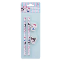 Add some personality to your pencil case with this adorable Hello Kitty & Friends pencil and eraser set. Featuring character toppers and colourful print, it's a fun and functional set for school or home.