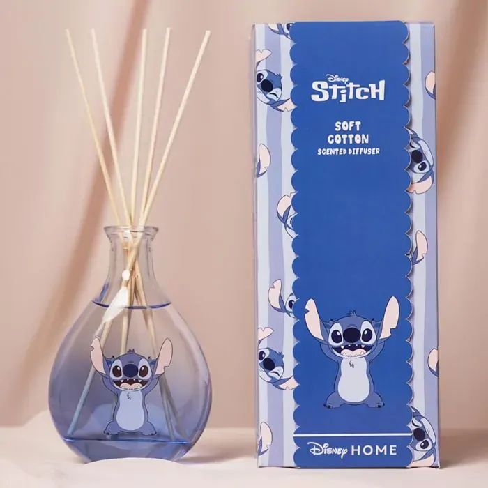 Let your space smell as fresh as Stitch is mischievous with this charming Stitch reed diffuser. Featuring a refreshing Soft Cotton fragrance, this diffuser is encased in a sleek blue-tinted glass bottle adorned with a waving Stitch. The coordinating blue box features playful character artwork, making it ideal for gifting or displaying proudly in your home.