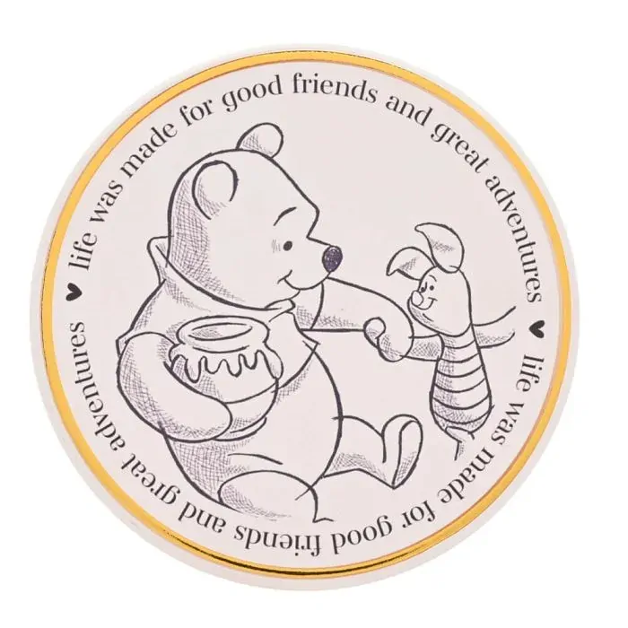 Bring the magic of Disney into the home with the Disney Classic Collectable Coaster featuring Winnie the Pooh and Piglet. This delightful piece showcases everyone's favourite bear and pig in a cartoon-style illustration, paired with an endearing quote about friendship and adventures. This coaster not only protects surfaces from drink spills but it also adds a whimsical touch toany coffee table or workspace, making it a perfect gift or keepsake for Disney enthusiasts.