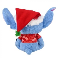 This delightful Disney Stitch Christmas themed plush features Stitch wearing a Santa hat and a red shirt with the caption 'Happy Holidays'. The Stitch plush is made from super soft plush with an embroidered face and features crinkle in body.