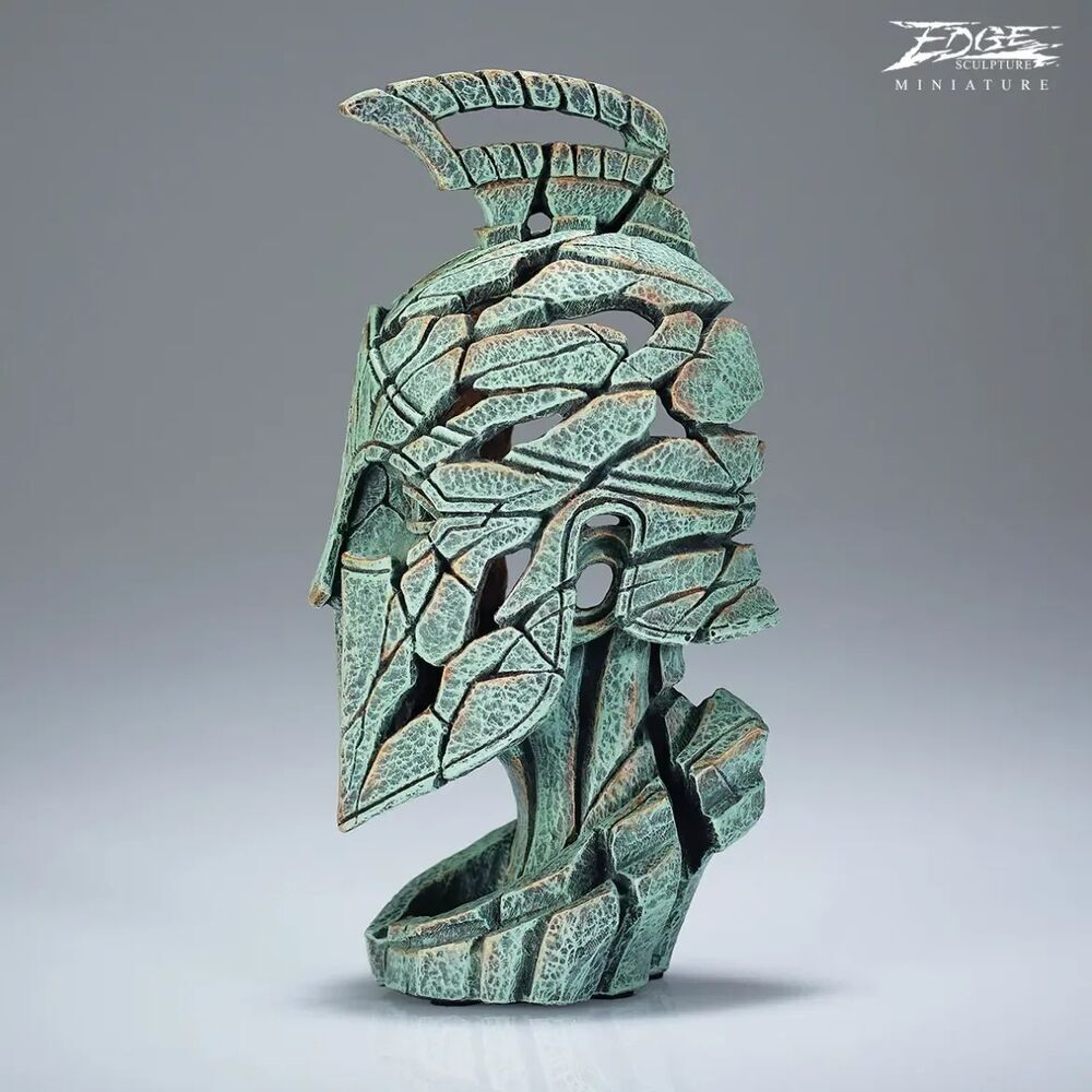 This stunning visual representation of a Spartan Bust has been brought to life in a miniature sculpture with intricate carvings showcasing its features and hand-painted with shades of green and bronze. Edge Sculpture's Spartan is a modern yet utterly affordable piece to showcase in homes.