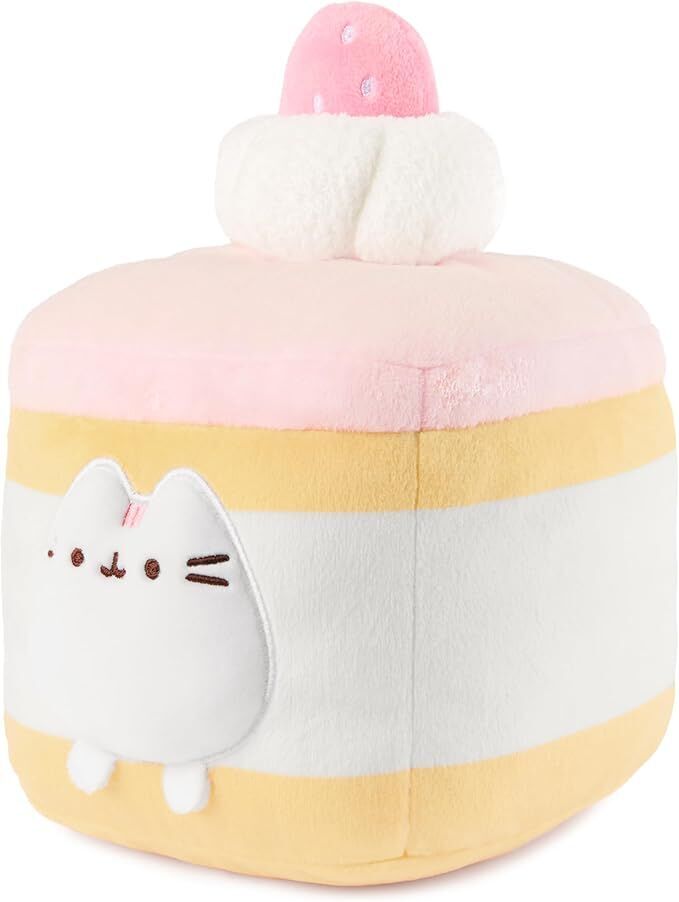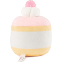 Celebrate every occasion like Pusheen would – with cake and snuggles! This soft, sweet 6” square strawberry sponge cake features layers of beige and white striped plush with a happy white Pusheen cake decoration popping out in front. It’s topped with a layer of creamy pink frosting, a dollop of whipped cream, and a pink strawberry. Squisheens are super-soft & squishy, and surface washable for easy cleaning.