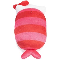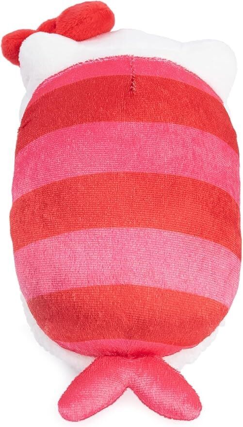 Hello Kitty, the beloved star from the world of Sanrio, is here as a soft sashimi! This 15cm soft white plush features Hello Kitty lying down on a bed of fluffy white sherpa rice, boasting a shiny two-tone velour back. The sashimi is striped with a bold red-and-pink pattern and features an adorable tiny fishtail in the back.