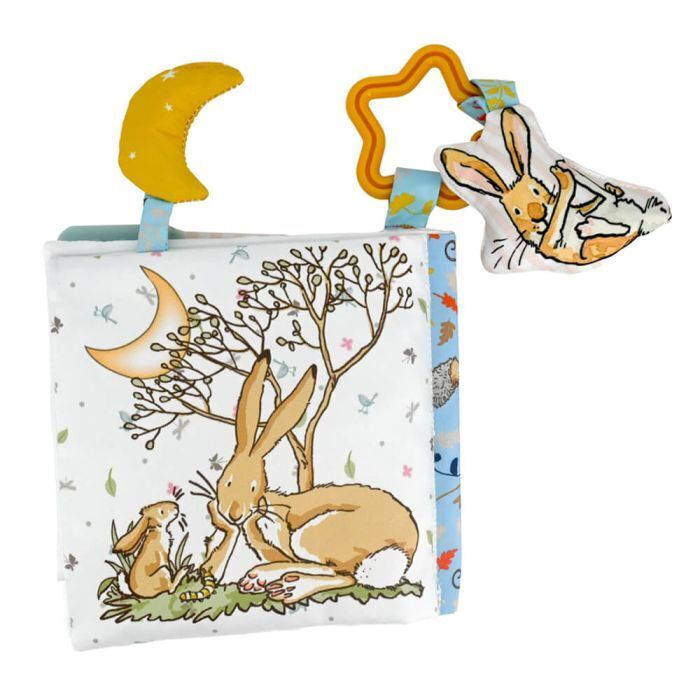 This sweet Guess How Much I Love You soft book features classic styling and iconic captions from the beloved story book. With a handy star-shaped on-the-go clip, this soft book can be attached to a pram, car seat or cot to entertain and stimulate baby whilst out and about. With crinkle sounds, a peekaboo pocket and Little Nutbrown Hare and moon attachments, this entertaining soft book with stimulate baby’s senses and the familiar captions with help build a bond between baby and their loved ones.