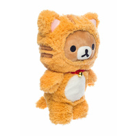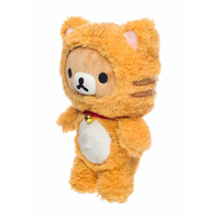 Rilakkuma is dressed as an orange tiger with long pile fur and a real bell on their collar. The 23cm plush is made in a sitting position and features embroidered detailing.