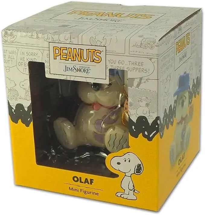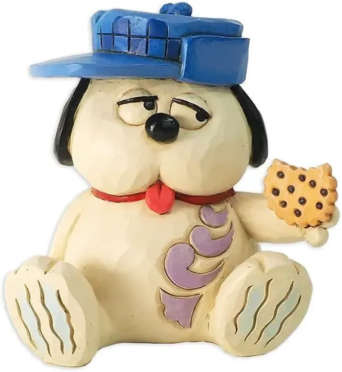 Jim Shore has brought Snoopy brother's to life! Olaf has sleepy eyes and wears a charming blue hat, holding a nibbled cookie in his paw.