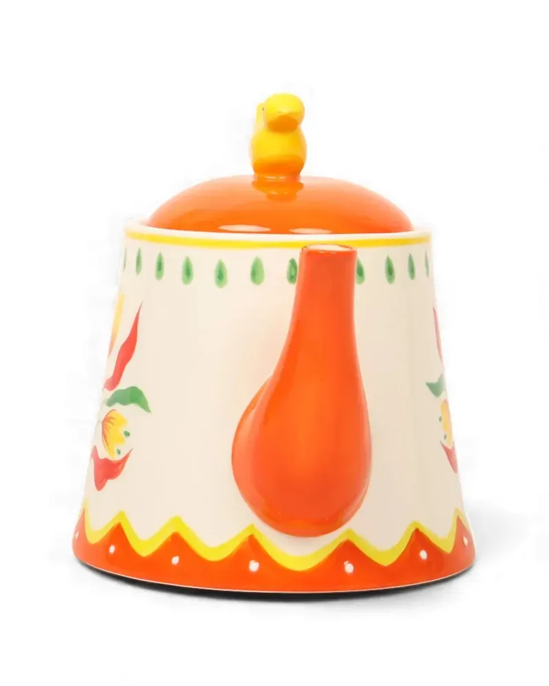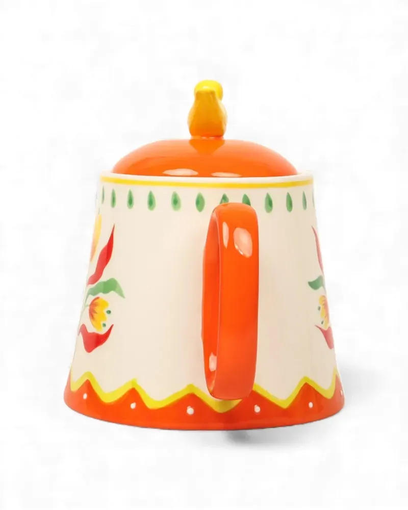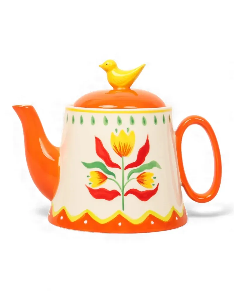 Bring warmth and vintage charm to your tea rituals with the Retro Folk Stoneware Hand Painted Teapot. Inspired by traditional folk art, this beautifully crafted teapot features a soft cream base adorned with vibrant hand-painted style florals in cheerful red, yellow and green tones. Made from durable stoneware, the teapot includes a comfortably curved handle and a smoothly shaped spout for easy pouring. The fitted lid is topped with a charming sculpted bird, adding a playful decorative touch that makes this piece both functional and eye-catching. Perfect for serving tea during relaxed breakfasts, afternoon tea or cosy gatherings, the Retro Folk Teapot brings colour and character to your table setting. Its scalloped detailing and folk-inspired motif pair beautifully with other pieces from the Retro Folk collection to create a coordinated, nostalgic look.