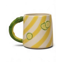 Brighten your daily coffee or tea ritual with the Seaview Stoneware Asparagus Mug, a playful piece designed to bring colour and character to your drinkware collection. Crafted from glazed stoneware, this mug features hand-painted yellow and cream stripes accented with raised asparagus detailing on the handle, creating a joyful, tactile design that feels both fun and considered. The generously sized shape sits comfortably in the hand, making it perfect for morning coffees, afternoon teas or cosy soups. Its sturdy stoneware construction helps retain warmth, while the glossy finish enhances the vibrant colour palette and gives the mug a polished, high-quality feel. Designed to be as decorative as it is functional, the Asparagus Mug adds personality to open shelving or kitchen benches when not in use. Mix and match with other Seaview mugs to create an eclectic, collected look that celebrates playful design.