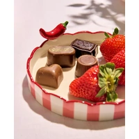 Add a playful pop of colour to your table with the Seaview Stoneware Hot Chilli Dish, a charming piece designed to elevate everyday serving. Crafted from glazed stoneware, this dish features bold red and cream stripes with a gently scalloped edge, finished with a glossy hot chilli detail perched on the rim for a fun, unexpected touch. Perfectly sized for sweets, snacks or small bites, this versatile dish is ideal for serving chocolates, berries, olives or condiments. The shallow shape makes it easy to share, while the glossy finish highlights the vibrant colours and gives it a polished, decorative feel. Whether used for entertaining or daily grazing, it brings personality and warmth to any setting. Designed to be both functional and decorative, the Hot Chilli Dish looks just as good styled on open shelving or a coffee table as it does in use. Its bold palette and playful motif make it a standout piece that adds character to modern, eclectic or retro-inspired interiors. Part of the Seaview collection, this stoneware dish pairs beautifully with coordinating serveware to create a cohesive, joyful tablescape. Ideal as a thoughtful gift or a delightful addition to your own home, the Seaview Stoneware Hot Chilli Dish celebrates colour, craftsmanship and relaxed, feel-good entertaining.