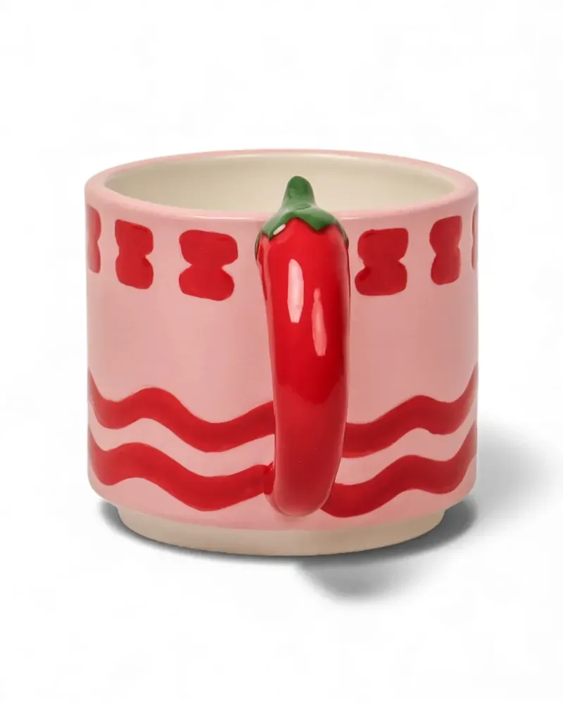 Spice up your daily coffee or tea ritual with the Seaview Stoneware Hot Chilli Mug, a bold and playful piece designed to bring warmth and personality to your drinkware collection. Crafted from glazed stoneware, this character-filled mug features hand-painted red and cream detailing, finished with a raised hot chilli handle that adds a fun, tactile twist. The generously sized shape sits comfortably in the hand, making it perfect for morning coffees, hot chocolates or cosy evening drinks. Its sturdy stoneware construction helps retain heat, while the glossy finish enhances the vibrant colours and sculptural details for a polished, high-quality feel. Designed to be as decorative as it is functional, the Hot Chilli Mug looks striking displayed on open shelving or styled on a kitchen bench. Mix and match with other Seaview mugs to create an eclectic, collected look that celebrates playful design and bold colour.