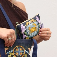 Keep your essentials stylishly secure with the Majestic Coast Coin Purse. This charming cotton coin purse features stunning illustrated crab and mermaids by in-house artist Laura Ramos from our Majestic Coast collection. Adding a touch of country-inspired elegance to your everyday items.