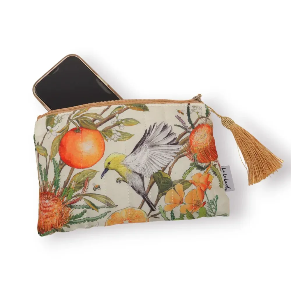 Golden Hour is an ode to light, warmth, and the natural elegance of the Australian landscape, when the sun dips low and the landscape is washed in warm, honeyed light. Illustrated by in-house artist Laura Ramos, this collection captures the nostalgic glow of golden hour through intricate drawings of Grevilleas, succulent oranges, and native blooms, all delicately entwined with flowing feminine ribbons and bows. Hints of soft blue and eucalyptus green contrast beautifully with sun-soaked yellows and earthy oranges, evoking the feeling of a late summer afternoon. Among the designs are charming Queenslander-style homes, a nod to relaxed, open-air living that allows you to bask under the sun all day long.