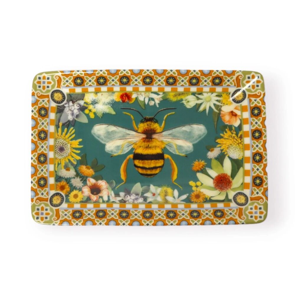 Crafted from premium new bone china, the Good Evening Vol. 2 Ceramic Trinket Tray showcases Australia's stunning flora. Featuring a delicate bumble bee amongst detailed Australian native florals, created by the talented La La Land artist Laura Ramos.