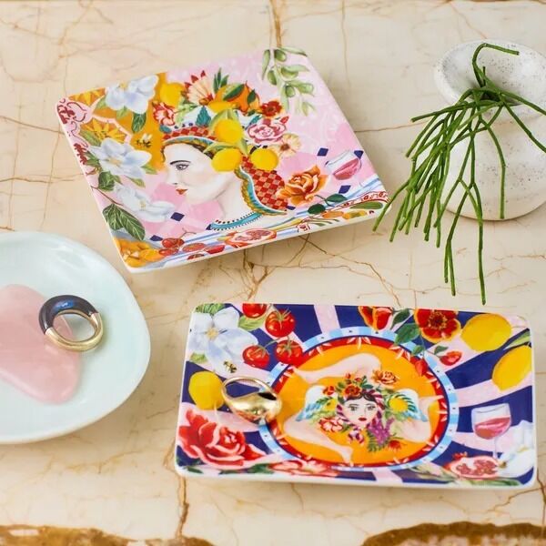 Crafted from premium new bone china, the Italian Summer Ceramic Trinket Tray exudes Meditaranean style. Featuring stunning Southern Italian inspired illustrations created by the talented La La Land artist Murilo Manzini.