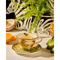 Add a touch of tropical elegance to your tea and coffee moments with the Teacup & Saucer Brazilian Summer. Richly illustrated with vibrant rainforest scenes, exotic wildlife and lush fruit, this beautifully crafted set captures the warmth, colour and joy of a sun-drenched Brazilian escape. Made from glazed ceramic, the teacup features a gently flared rim and comfortable curved handle, designed to sit perfectly in the hand. The matching saucer showcases coordinating geometric patterns and artwork, creating a cohesive and visually striking pairing. Delicate gold detailing along the rim adds a refined finish that elevates the set beyond everyday drinkware. Complete with an illustrated gift box. Ideal for morning tea, afternoon coffee or special occasions, this teacup and saucer brings personality and charm to your table setting. Whether enjoyed solo or styled with guests in mind, its a piece that invites you to slow down and savour the moment. Perfect as a gift or a statement addition to your own collection, the Brazilian Summer Teacup & Saucer pairs beautifully with other pieces from the range, allowing you to create a bold, coordinated look inspired by tropical living.