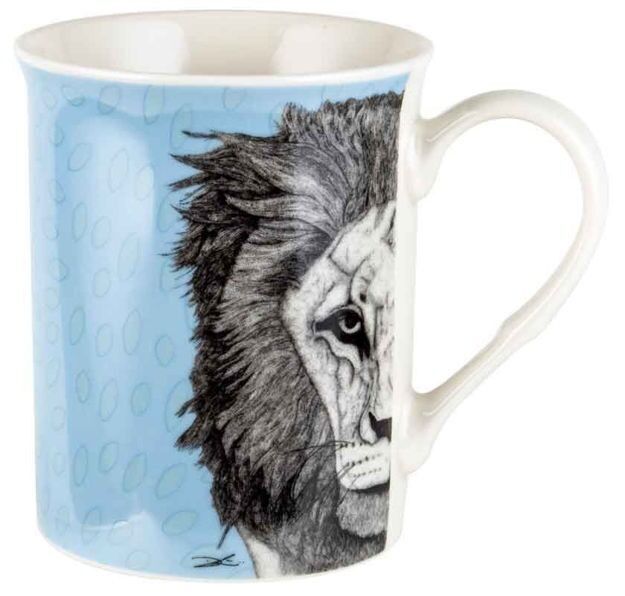 Part of the Dots By Donna range, this mug features a motif of a majestic lion against a blue pattern.