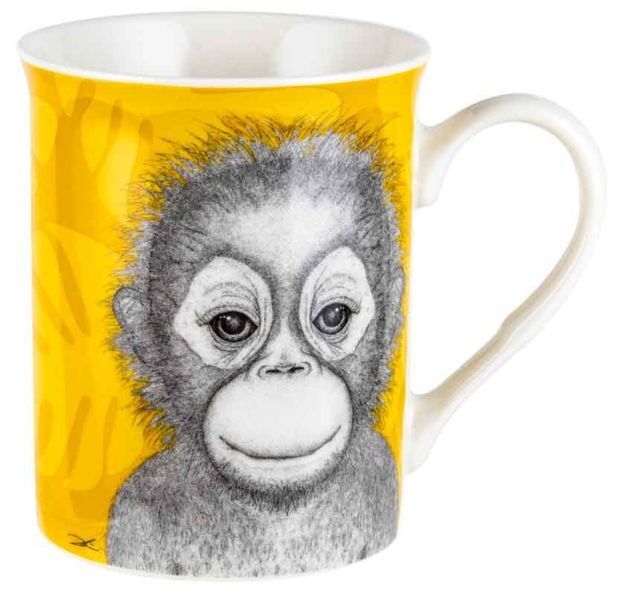 Part of the Dots By Donna range, this mug features a motif of an adorable baby orangutan against a yellow pattern.
