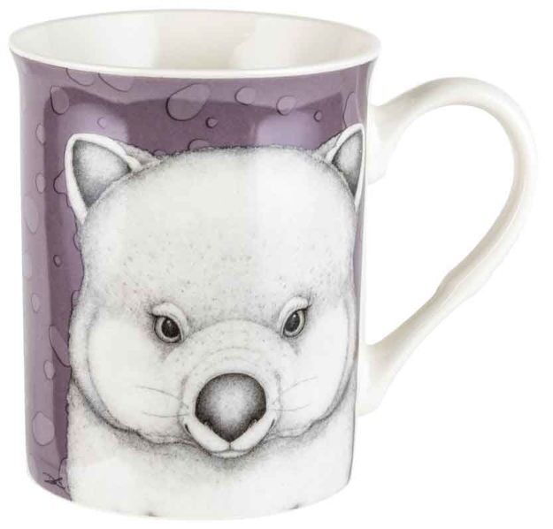 Part of the Dots By Donna range, this mug features a motif of a cute wombat against a purple pattern.