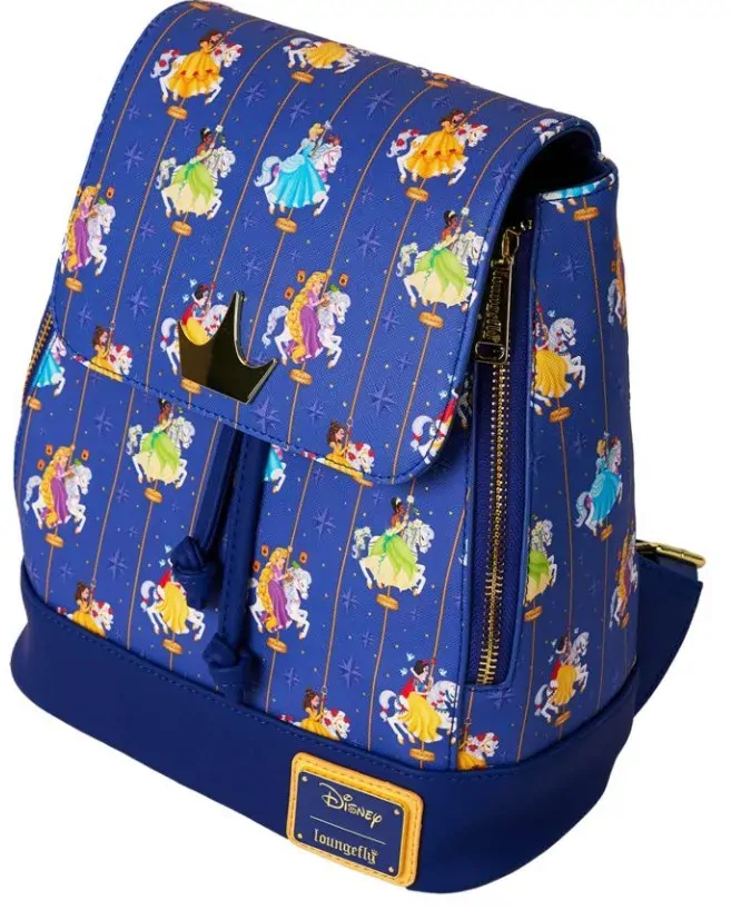 Up and down and 'round we go! Take your wardrobe for a whimsical whirl with this charming mini backpack. Hum your favourite tune while looking for your favourite Disney Princesses, who ride carousel horses decorated with story-specific details. This bag makes a playful addition to any outfit and brings a bit of theme park magic to every day.