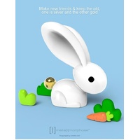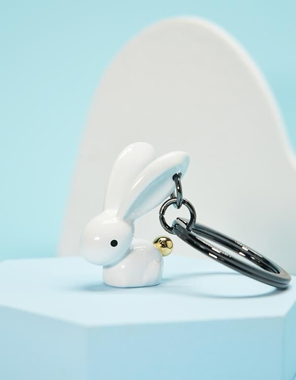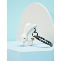 Carry around this sweet white bunny keyring from Metalmorphose. Made from durable zinc and chrome this keyring clips easily onto keys or bags. Bounce around with this fun character on your back pack or let him keep your keys safe with his friendly eyes and golden bobble tail. This bunny keyring is a great gift for all animal lovers.