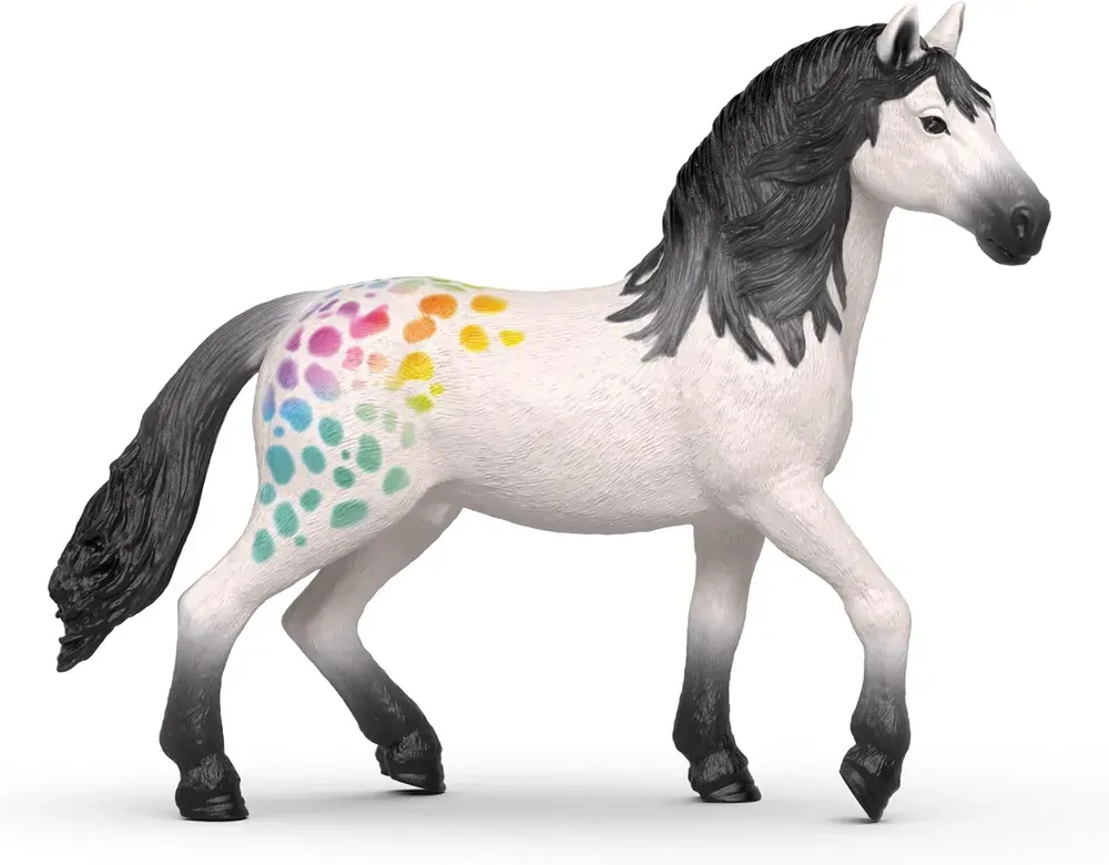 Schleich's popular horse is now available in a 90th anniversary edition. This iconic animal is presented in an exclusive special paintwork with white fur and a colourful pattern in rainbow design. This is a special limited collectible figurine. A great gift for collectors and Schleich lovers!