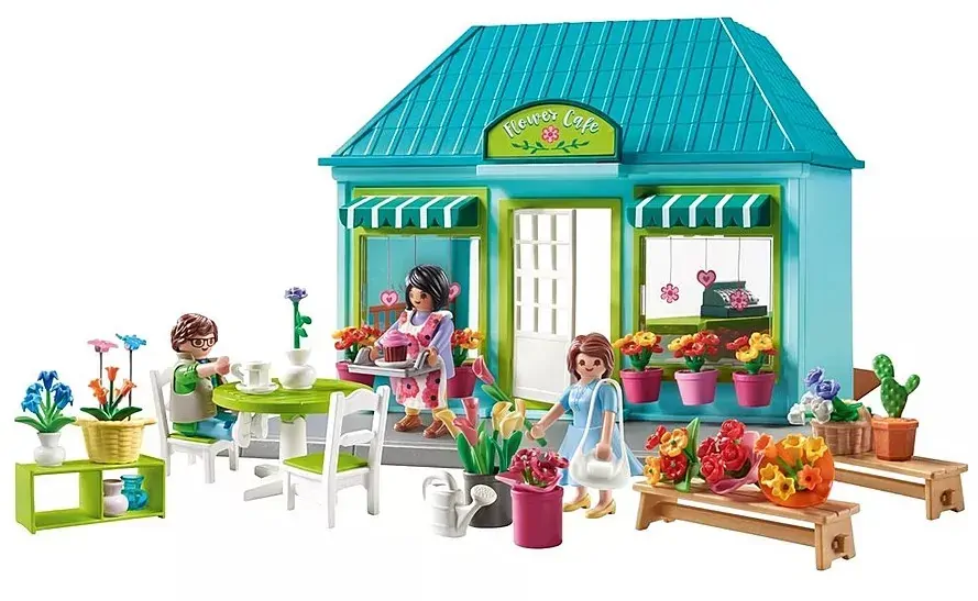 The PLAYMOBIL Flower Cafehouse is a charming blend of floral elegance and cozy café atmosphere. Here, young florists can unleash their imagination and create stunning floral arrangements. At the same time, the café offers delicious treats, allowing customers to enjoy a warm drink.