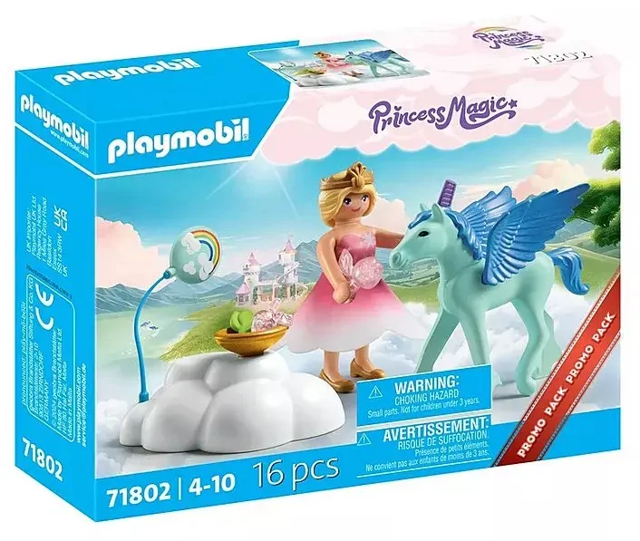 Celebrate the birthday of the princess's sweet Pegasus foal together. This set promises a magical time: Comb the foal, feed it with apples, and let the princess hold the floating balloon. An unforgettable day for the Pegasus foal!