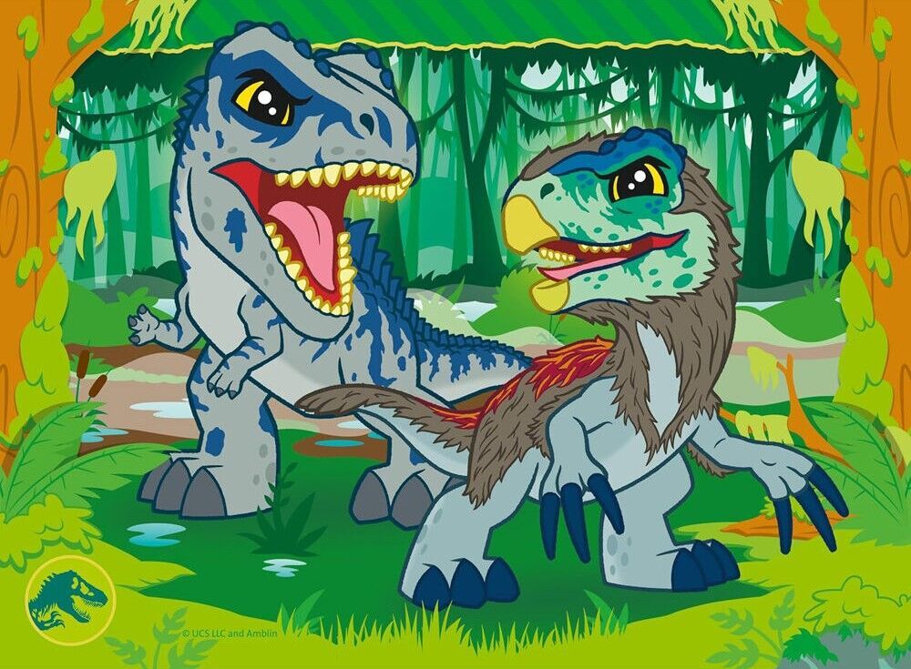 Prepare for some exciting explorations with the adorable Jurassic World Explorers; Beta, Blue, T-Rex, Red, Panthera, Ghost, Tiger, Gigantosaurus and Therizinosaurus. Let's rock and roar! This bright and colourful 4 in a box is the perfect puzzle set is a perfect introduction to the world of dinosaurs with these adorable dinos!