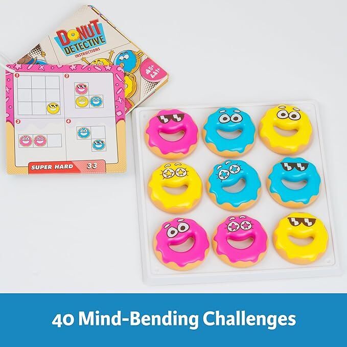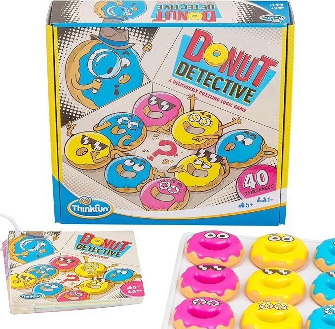 Donut Detective is a "delicious" logic game from ThinkFun! Arrange the donuts according to the clues to solve the puzzle.