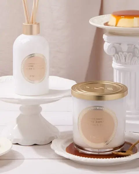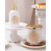 A luscious blend of Caramel, Sugar, and Gourmand evokes a rich indulgent sweetness, while a fusion of Butter and Tonka Bean adds a warm, savoury depth. Praline and Vanilla linger with a delectable finish, balancing the fragrance with a creamy, nutty richness. Housed in a white glass vessel, the luxurious aroma will transport you to a world where elegance and comfort meet, making every moment a delightful escape.