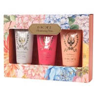 Treat yourself to a trio of nourishing Hand Creams rich in Shea and Cocoa Butters with Vitamin E in the blossoming scents of Belladonna, Lychee Flower, and Snow Gardenia.