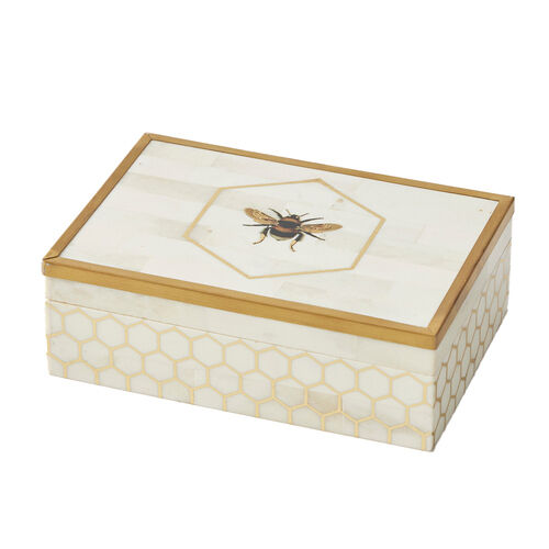 Stylish and versatile, the Bea Deco Box is sure to bring interest to any space. Crafted with white bone and featuring a golden bee pattern it’s as stunning as it is practical. Use it as a decorative piece, a jewellery box or to keep your trinkets and treasures safe.