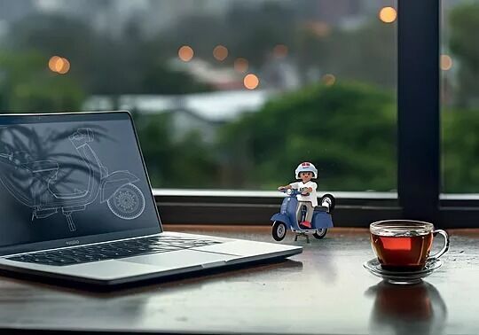 Set includes 1 man, 1 Vespa, 2 Vespa saddles black, 1 helmet