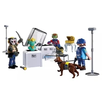 Set includes 1 policeman, 2 crooks (male and female), 1 guard dog, 2 museum display cases with jewelry and crown, 2 spotlights, 1 side table, 1 chest with jewels, 2 removable crook masks, 1 rope with hook, 1 hatchet, 1 flashlight, 1 crowbar, 1 sack, 1 police cap with microphone, 1 pistol, 1 safety vest for the dog, 1 dog lead.
