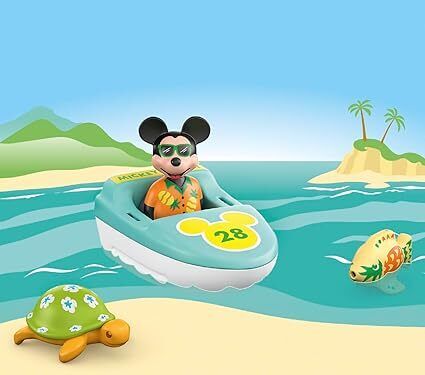 Set includes 1 Mickey Mouse figure, 1 turtle, 1 fish, 1 boat
